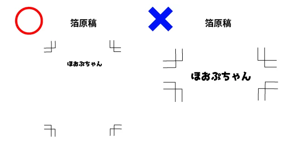 グレイ部分(K1~99%)部分は、50%を境に0%もしくは100%に変換されます。 - 細かい表現などは加工しても完全に再現できません。 細かすぎる線・点は潰れるか、かすれてしまいます。1pt(ポイント)以上、もしくは3px(ピクセル)以上の線で作成してください。