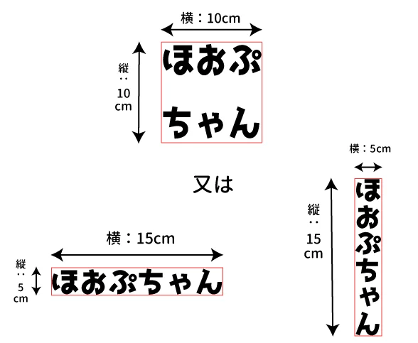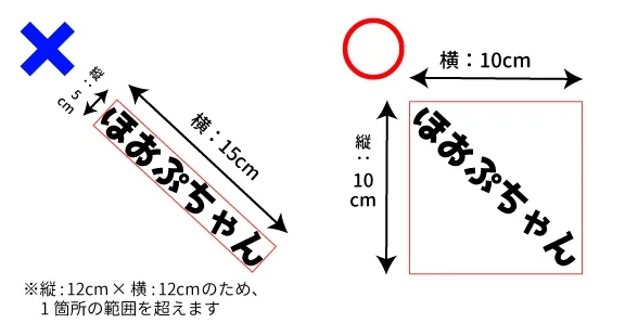 1箇所のサイズ「5㎝×15㎝」または「10㎝×10㎝」以内でお願いします。