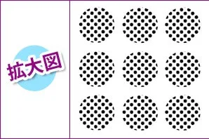 グレーのアミ点は印刷時に下のように印刷されます。(アミ点のなかにアミ)