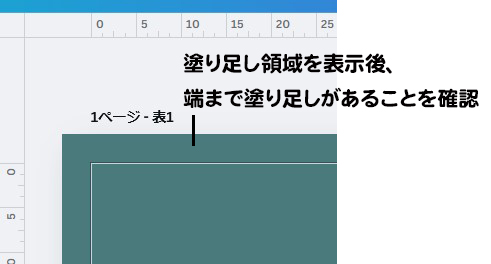 注意①塗り足しがデータに実際につくわけではありません。塗り足し付きで出力する際は後の手順をご参考下さい。