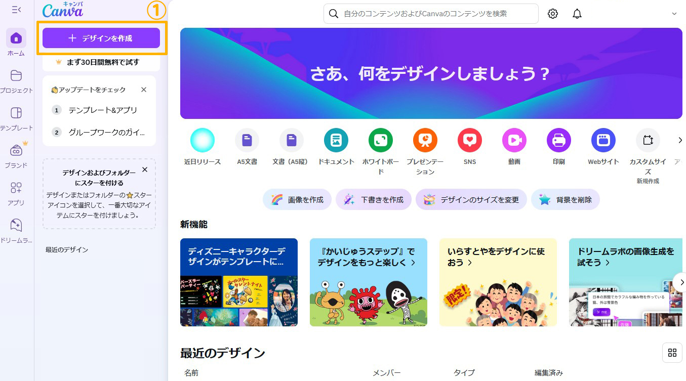 ⑤サイズが正しい事を確認し、「新しいデザインを作成」をクリックします。