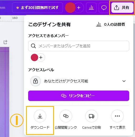 デザインが完成したら、入稿用のデータをダウンロードします。