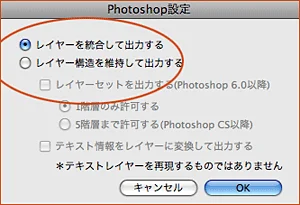 「設定」→「レイヤーを統合して出力する」→「OK」