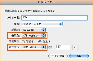 異なる設定のレイヤーにグレーで描画すると、すべてアミ点になる場合がございます