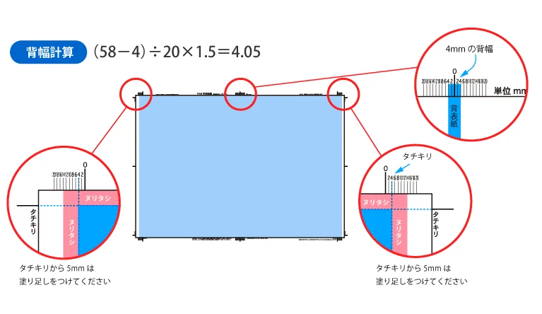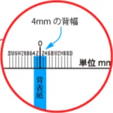 (例)背幅4mmの位置 … 左の「4」の数字から、右の「4」の数字まで