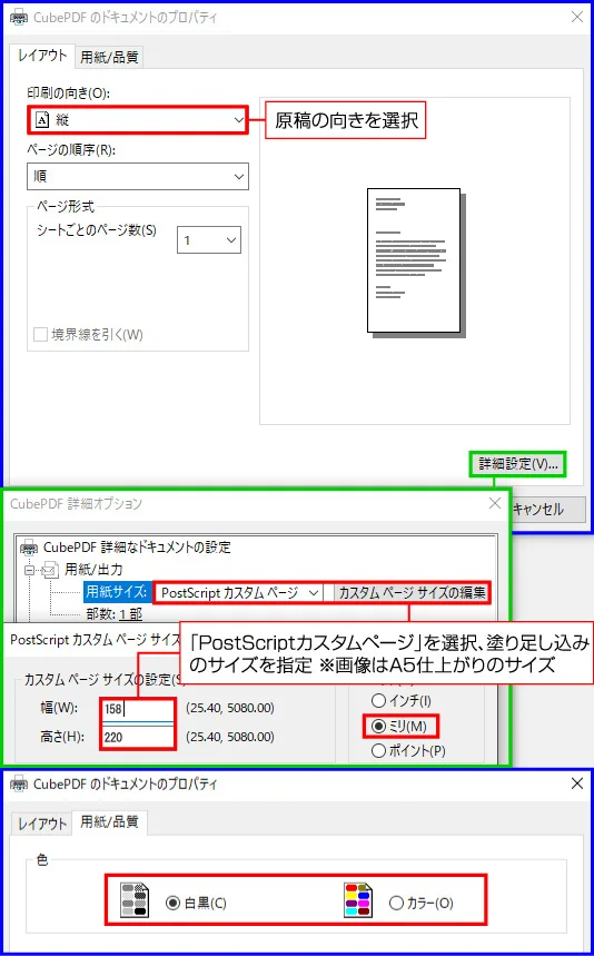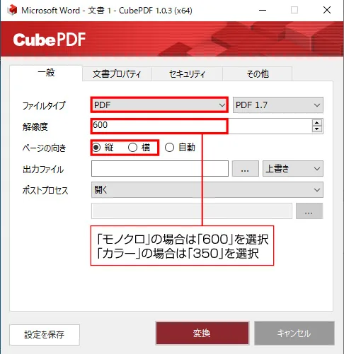CubePDFでの出力設定