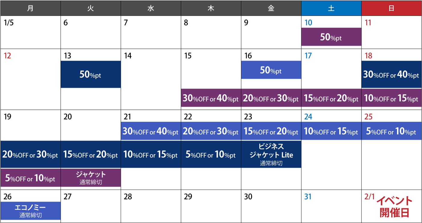 ※締切が1番遅いセットは「フライト エコノミー」になります。