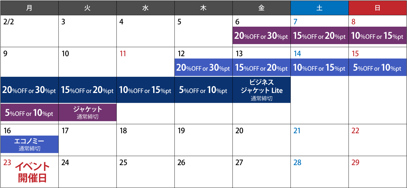 ※締切が1番遅いセットは「フライト エコノミー」になります。