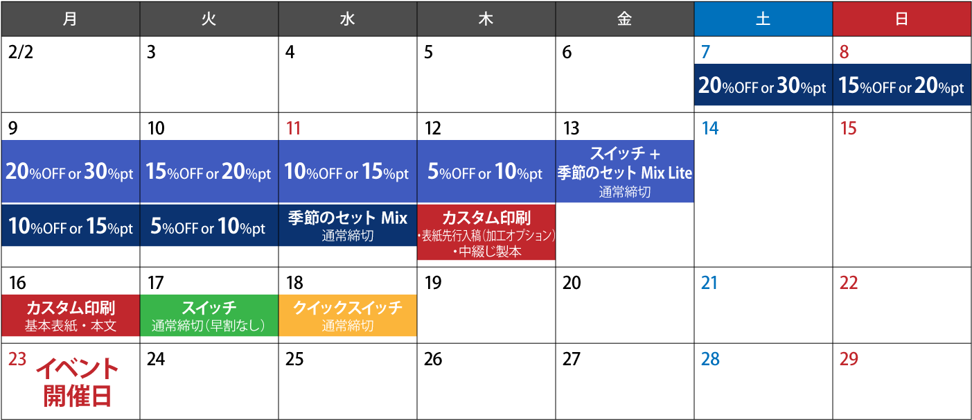 ※アナログ入稿は3営業日早まります。