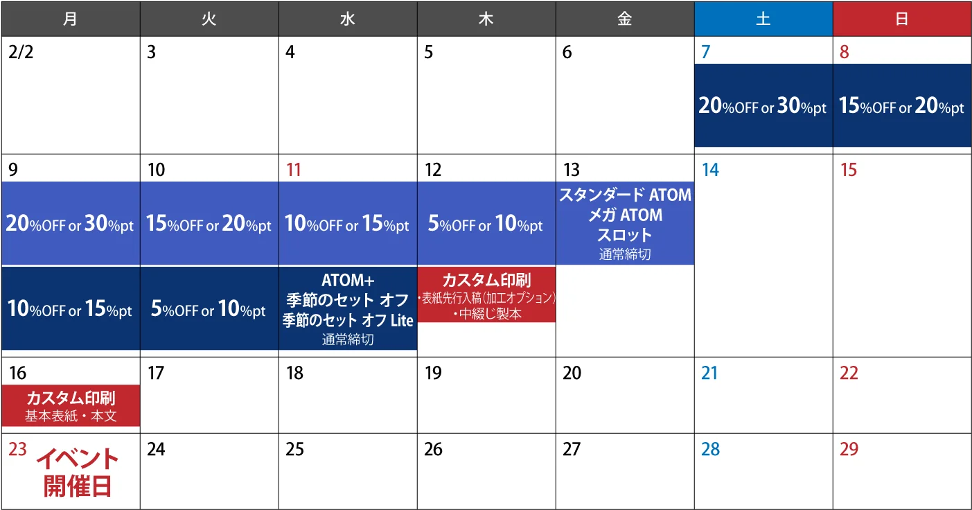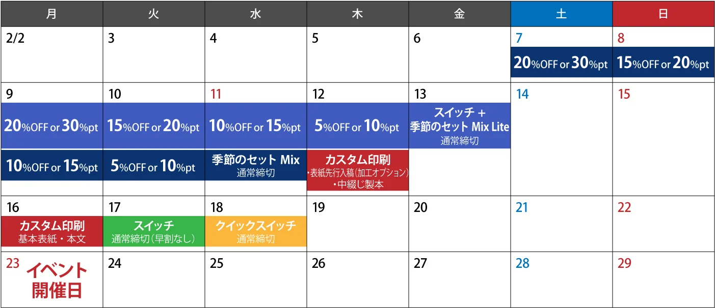 ※締切が1番遅いセットは「カスタム印刷」になります。