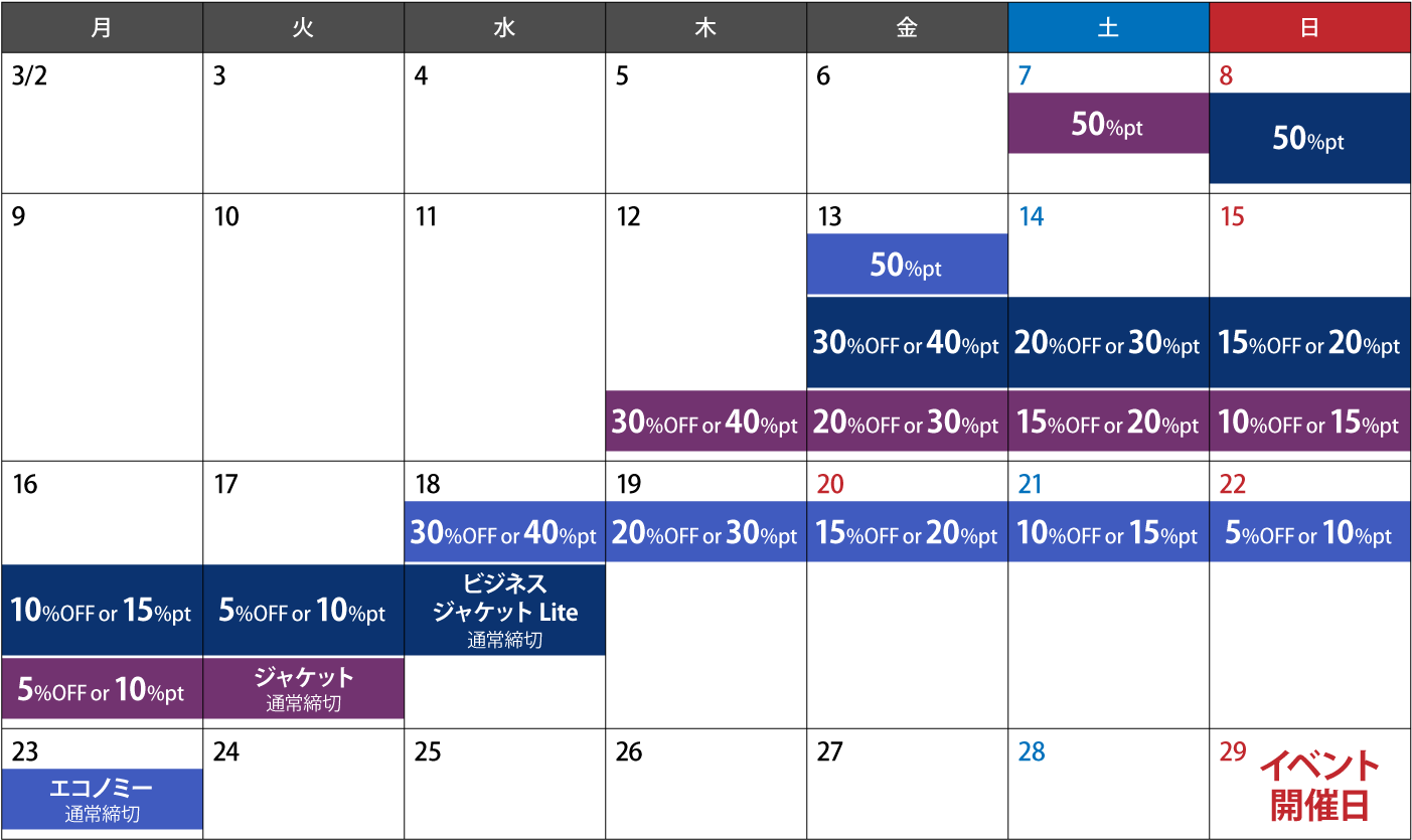 ※締切が1番遅いセットは「フライト エコノミー」になります。