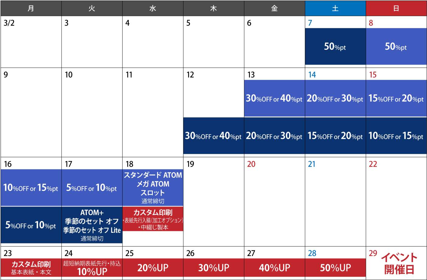 ※早期入稿特典は早割(●%OFF)か早得(●%ポイント)のどちらかをお選びいただけます。