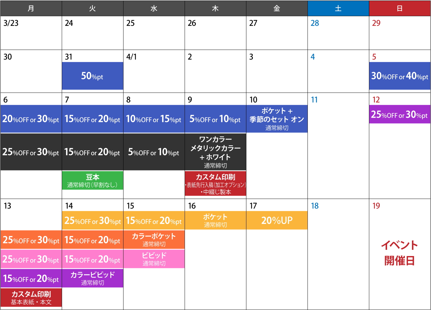 | フルカラーポスター(A3 / B4) | 4月15日(水) | |
