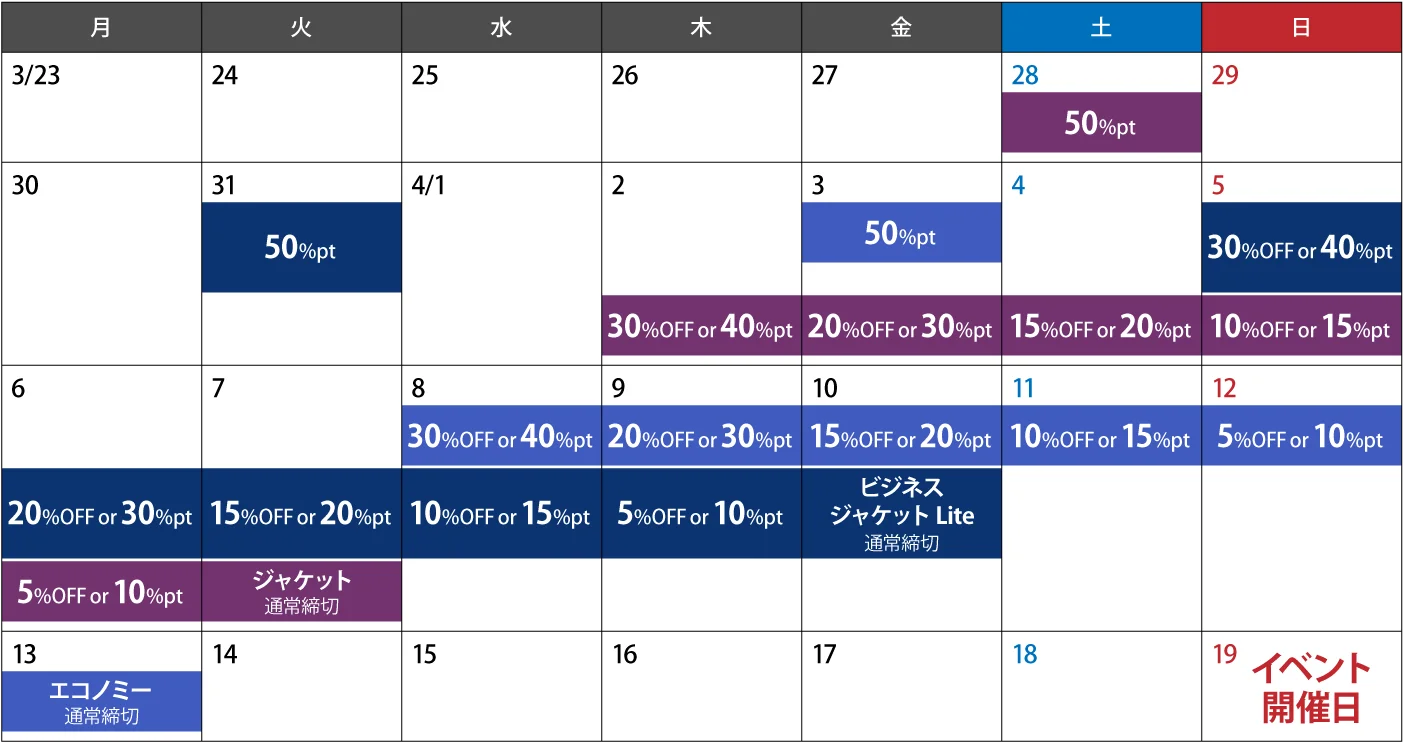 ※締切が1番遅いセットは「フライト エコノミー」になります。
