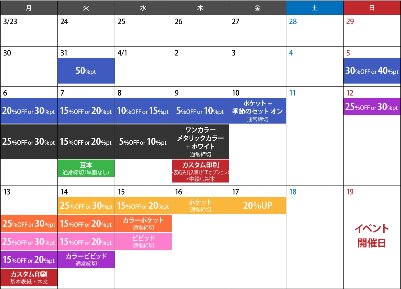 | フルカラーポスター(A3 / B4) | 4月15日(水) | |