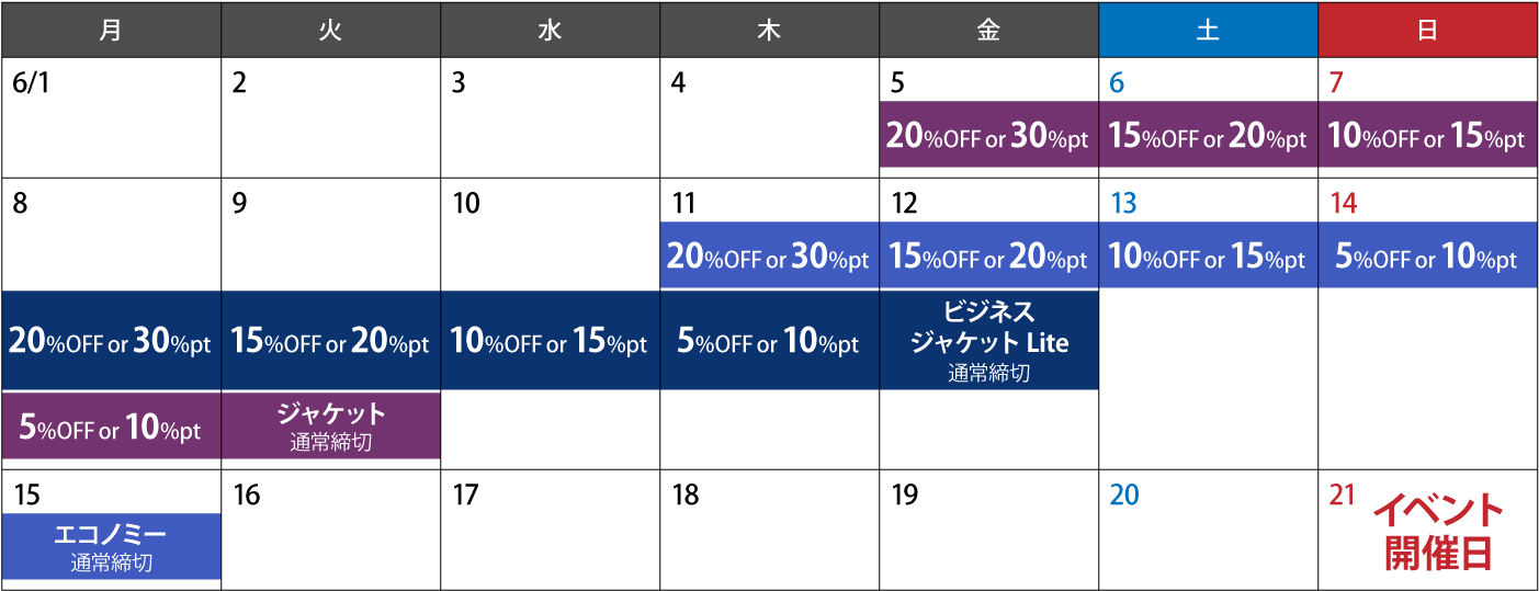 ※締切が1番遅いセットは「フライト エコノミー」になります。