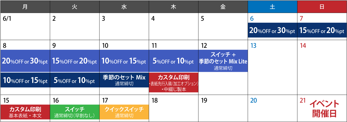 ※締切が1番遅いセットは「カスタム印刷」になります。