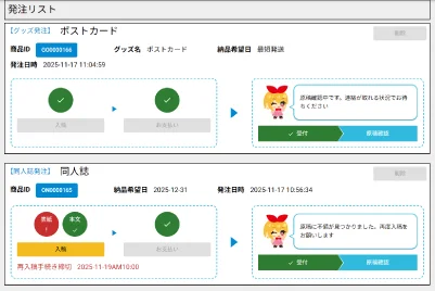 発注履歴の確認画面では