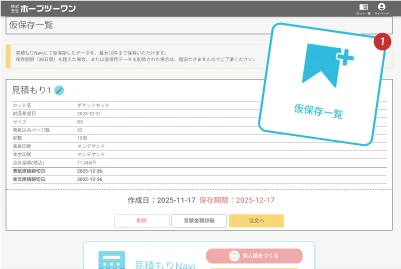 - 見積もり内容を30日間そのまま仮保存できます