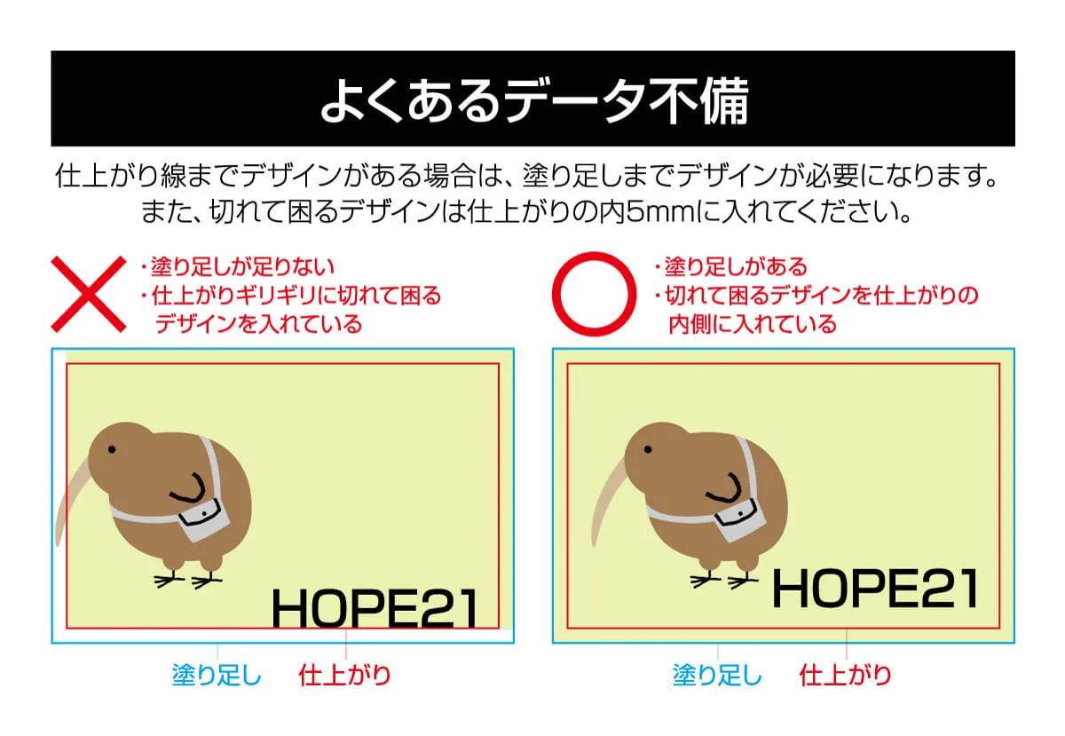 塗り足しは原寸(実際の仕上がり)サイズから+3mmお付けください。