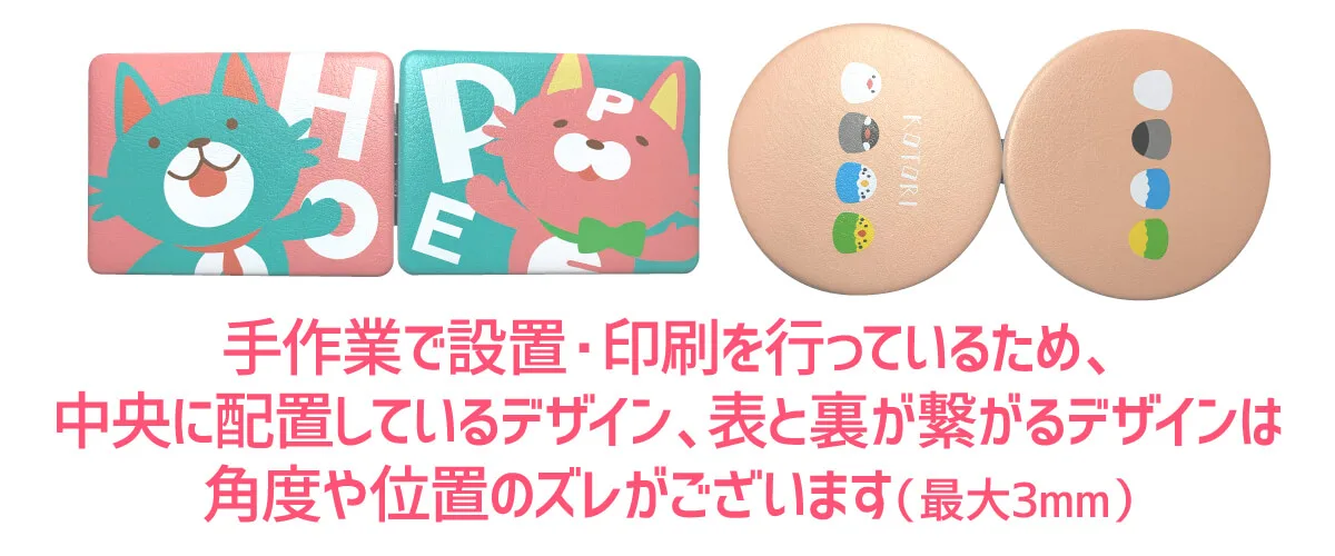 この商品は手作業で1点ずつ印刷機に設置・印刷を行っているため、印刷ズレが発生する場合がございます。3mm以内の印刷のズレにつきましては許容範囲内として、ご返品や刷り直しの対象外とさせていただいておりますためご了承ください。