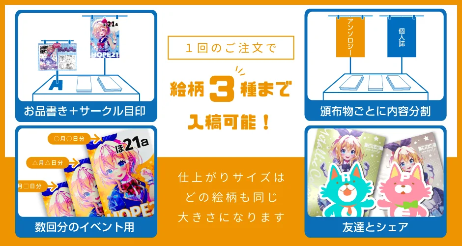 複数絵柄入稿可能:1回の発注につき3種類まで(※印刷方法の指定は1種まで)