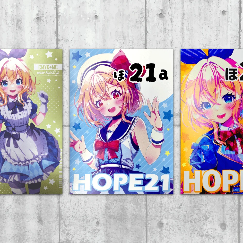 - メタリックカラーは細い線や文字、細かい白抜きを綺麗に印刷できない場合がございます。太い文字や広範囲でご使用ください