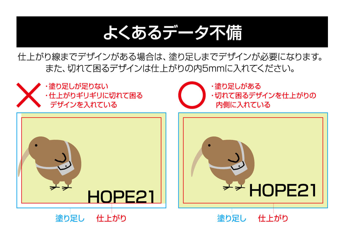 修正やお問い合わせの必要がない「完全データ入稿」をお願いしております。