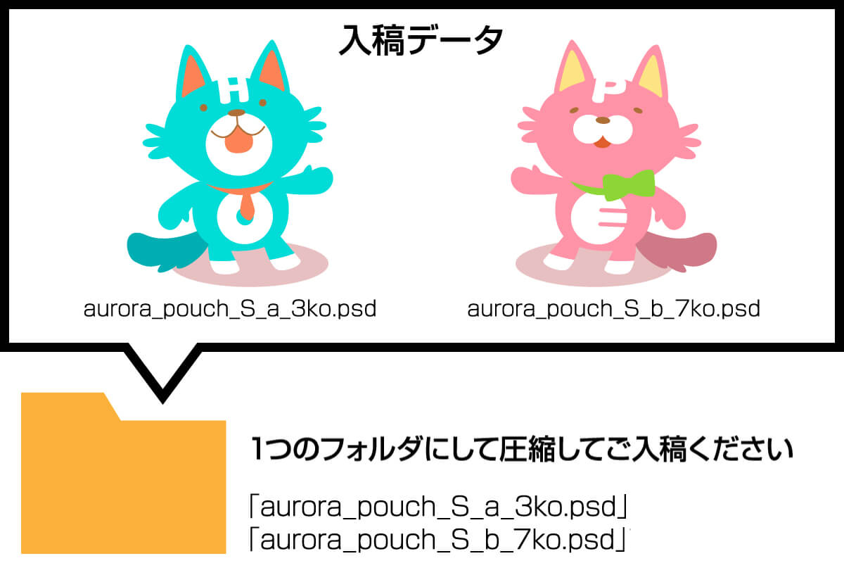 • 出力見本として、入稿データのスクリーンショット等を入稿用フォルダ内に添付ください。