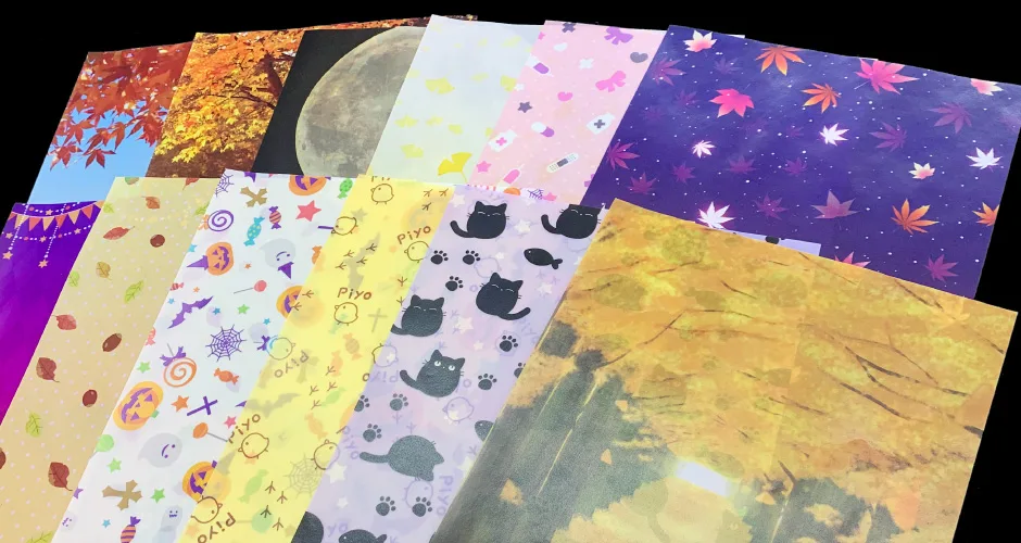 今回も秋限定柄に加え、年中使えるレギュラー柄を追加いたしました。リクエストも受付中です!