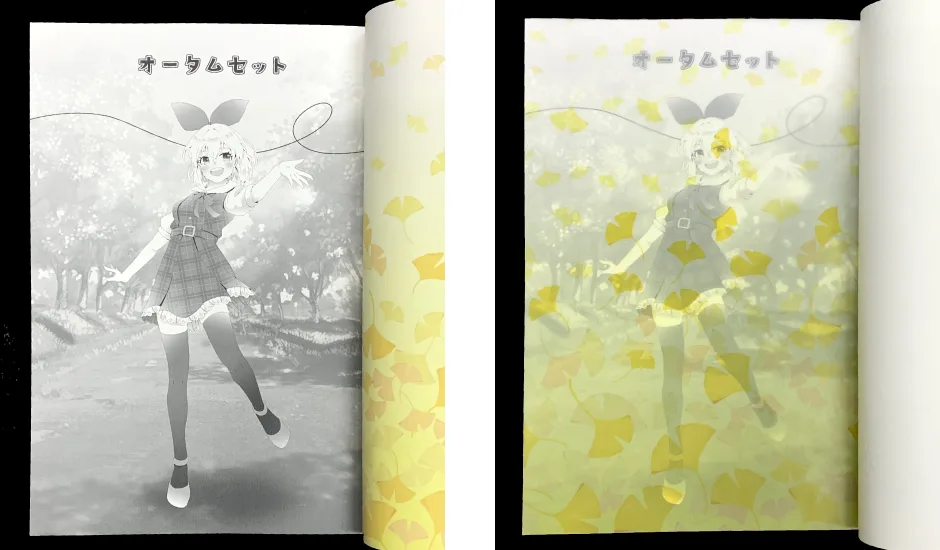 用紙:フルカラー:標準用紙、墨刷り:セット限定/秋限定/標準用紙