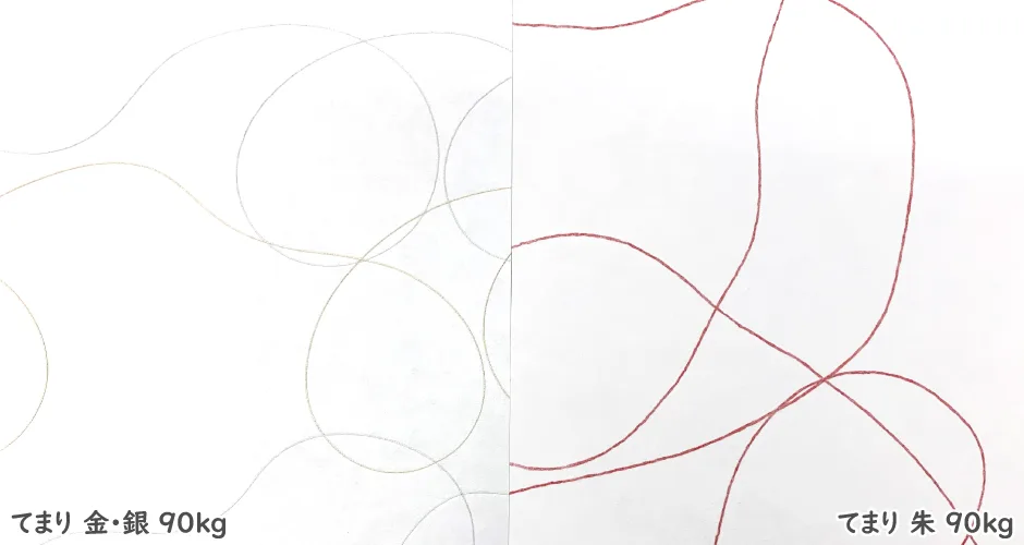 「てまり 金・銀」「てまり 朱」毎年人気の遊び紙てまりに今年は金・銀を追加しました!色糸を回転しながら抄き込んでおり、同じ模様は二つとありません。偶然から生まれる美しさをお楽しみ下さい。