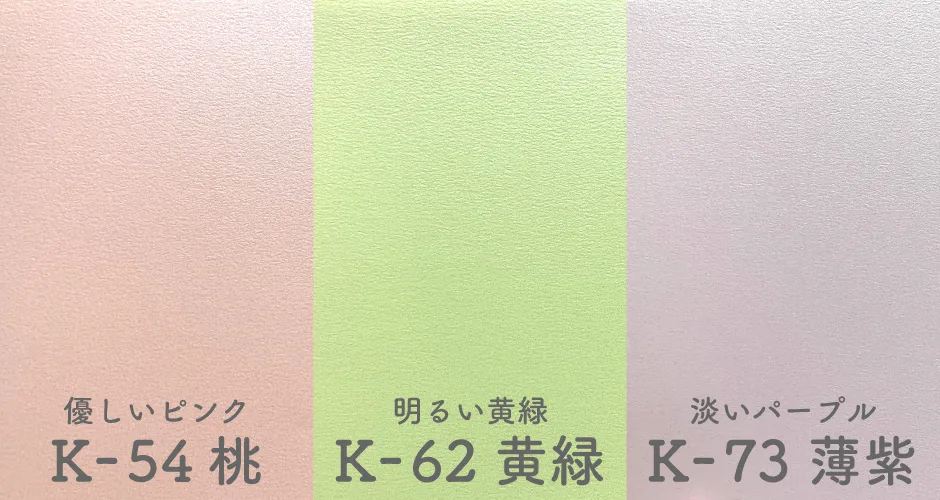 「タント キラ」はパステルカラーが特徴的なパール調の光沢紙です!少し凹凸があり、暖かみのある手触りと上品なキラキラで華やかさを演出してくれる用紙となっております。