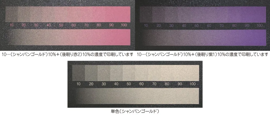 ・メタルインキを2色目にすると、先に印刷されたインキは隠れてしまいます。