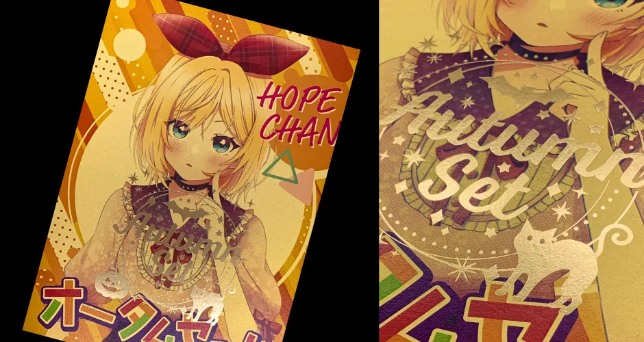 大好評の季節限定セットは秋らしいイメージと、お客様からのお声とスタッフの意見から、用紙、インク、加工共に季節に合わせてご用意!同人誌をつくる楽しさを贅沢に盛り込んだ期間限定のこだわりセットシリーズ!「仮装!オータムセット」でいつもと少し違う秋をお楽しみください!