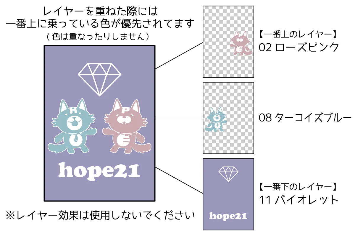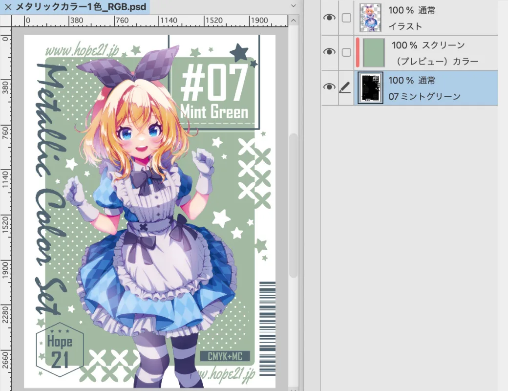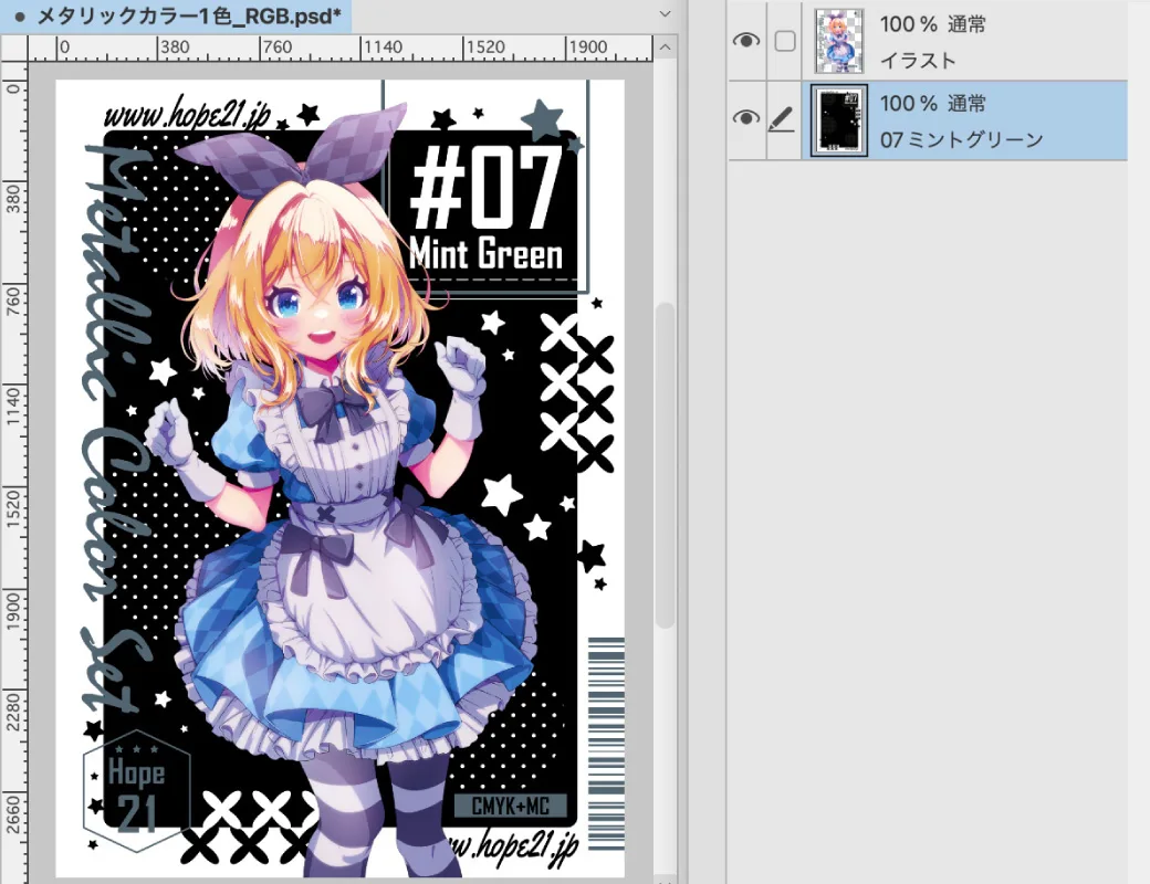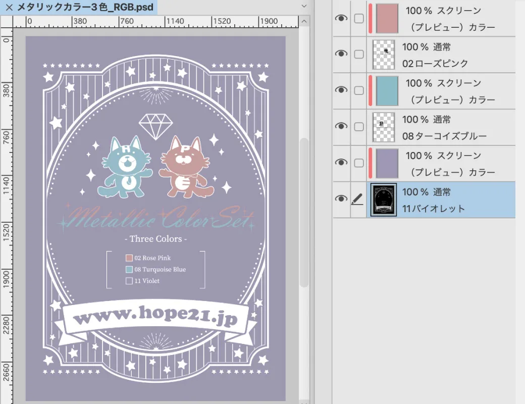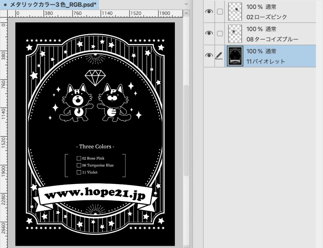 カラーイラストとメタリックカラーでレイヤーを分けてご入稿ください。