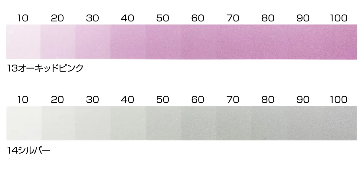 メタリックカラーは淡い輝きのため、細い線や文字には使用せず広範囲に使用するのがオススメです。