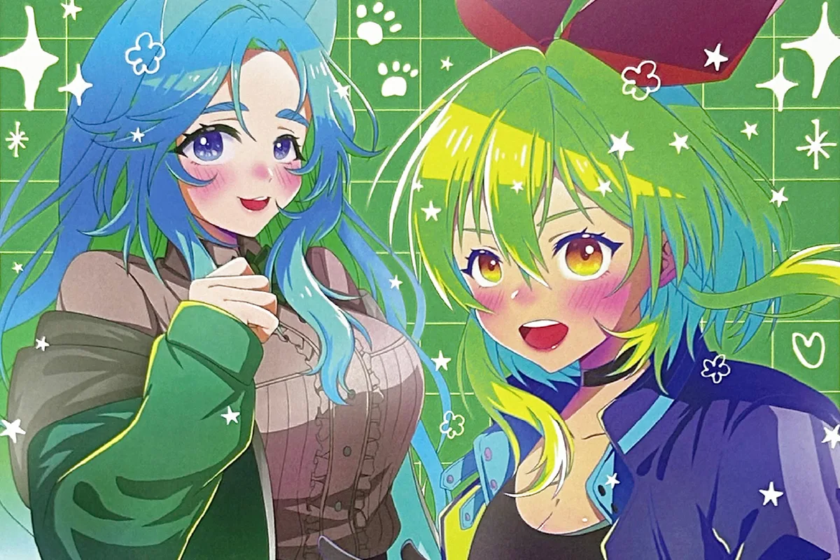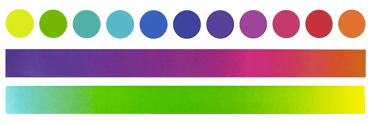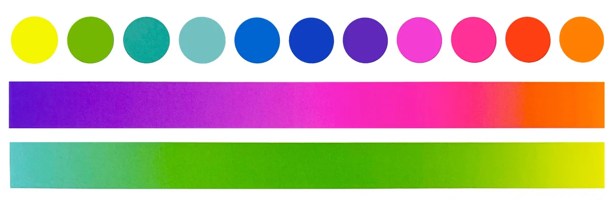 ピンクや赤みのない色のみで作られたデータ(青・水・黄緑・黄)や、彩度の低い落ち着いた色合いのデータ、CMYKで表現可能な色に関しましては蛍光ピンクが付与されない場合があるため、カラー印刷(CMYK)と同じ仕上がりになる場合がございます。