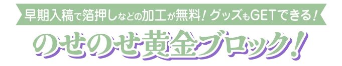 のせのせブロック数に応じて早く入稿すれば、色んなお得が手に入る!