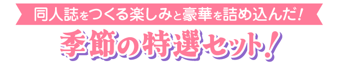 大好評の季節限定セットは秋らしいイメージと、お客様からのお声とスタッフの意見から、用紙、インク、加工共に季節に合わせてご用意!同人誌をつくる楽しさを贅沢に盛り込んだ期間限定のこだわりセットシリーズ!