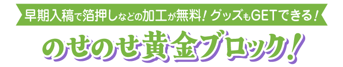 のせのせブロック数に応じて早く入稿すれば、色んなお得が手に入る!
