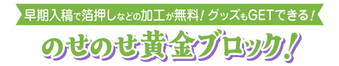 のせのせブロック数に応じて早く入稿すれば、色んなお得が手に入る!