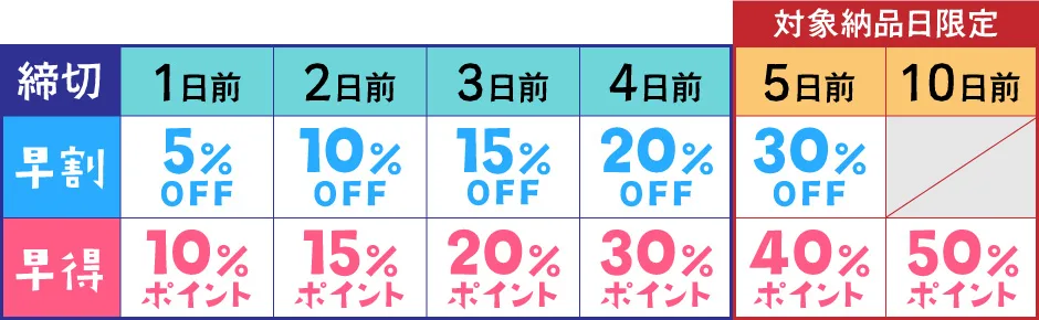 - 締切日と割引料金が反映されます。ご確認の上、発注手続きを進めてください。