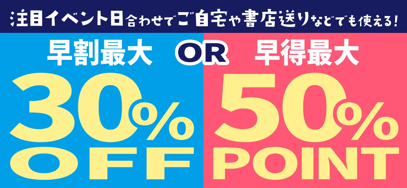 注目イベントへ参加する予定がなくても、同じ「納品希望日」でご注文すると送り先がご自宅や書店送りなどでも早割最大30%OFFや早得最大50%ポイント還元をご利用いただけます!