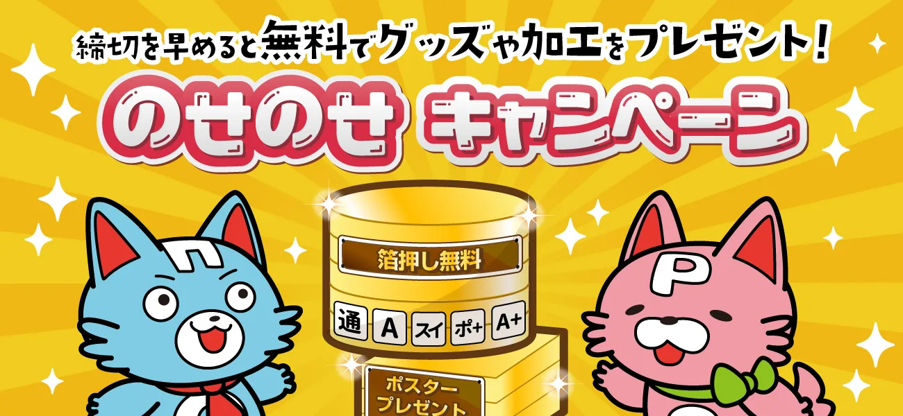 箔押しや空押しが基本料金の半額、オフセットの本文色刷り、アート遊び紙がセット料金内でご利用いただけるなど、セット内で様々な組み合わせをお楽しみいただけます!