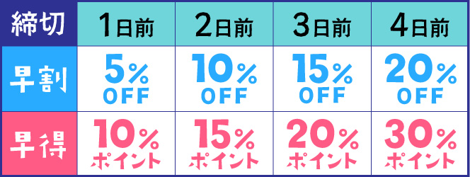 - 「早割プラン」タブもしくは「ポイント還元」タブからご利用を希望するプランを選択してください。