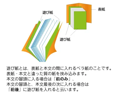 部数が200部以上、もしくはページ数60p以上なら、遊び紙が前後にもはさめます!
