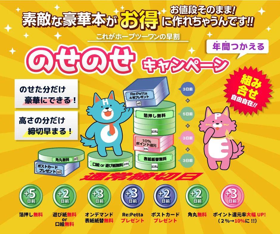 例えば、再販本を『のせのせキャンペーン』で早めに入稿していただき、
