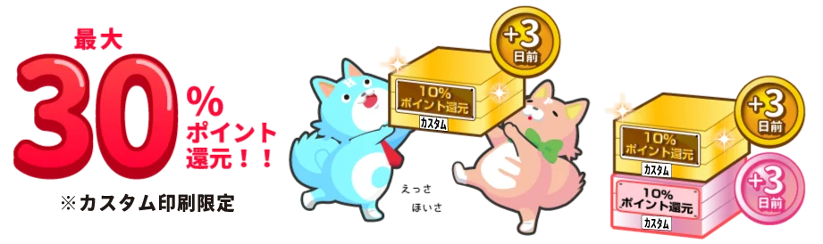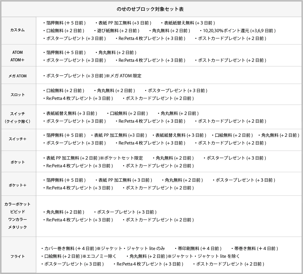 カスタム印刷・スイッチ+・ポケット+の表紙PP加工無料はこちら(締め切り日が異なります)